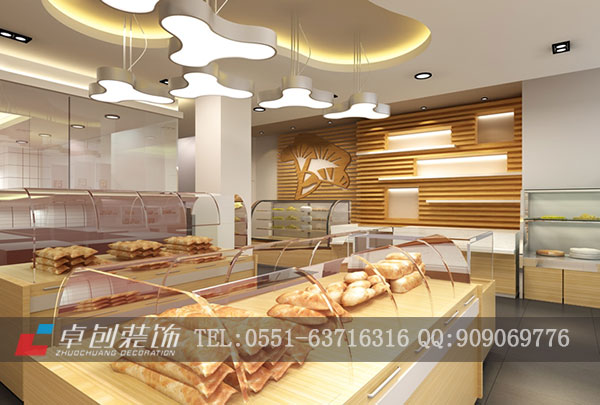 首先面包店裝修功能布局合理,線路流暢。展示區(qū)外放休閑區(qū)要往里放,可以讓經(jīng)過的客戶對(duì)我們的產(chǎn)品一目了然,產(chǎn)生購(gòu)買的欲望,同時(shí)顧客在店內(nèi)享用時(shí)也保證了顧客的私密性。操作空間要單獨(dú)的一個(gè)空間,可以設(shè)計(jì)一個(gè)玻璃櫥窗,讓顧客可以看到我們精心制作的過程,這樣也能滿足顧客的好奇心。