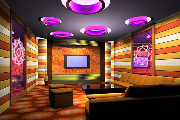 還有,在合肥ktv裝修的時候,色彩的搭配是一個很重要的方面,不同的色彩搭配可以有或溫柔、沉穩、嬌艷、神秘、質樸、華麗、歡快、憂郁等等不同的效果。我們需要注意的是應當先選出主色調,然后可以選用具有強烈對比效果的色彩,如亮對暗,暖色調對冷色調,可以達到生機盎然的效果 ?,F代的KTV色彩設計一般比較追求時尚但是懷舊的設計也是很有市場的。燈光和色彩在ktv裝修之中是很重要的,很好的搭配能夠烘托ktv的氣氛。要明確的是,KTV裝修雖然需要諸多燈光,但是不宜過亮,要以柔和為主,當然,特殊需要的地方,諸如收銀臺,可以局部用亮光。